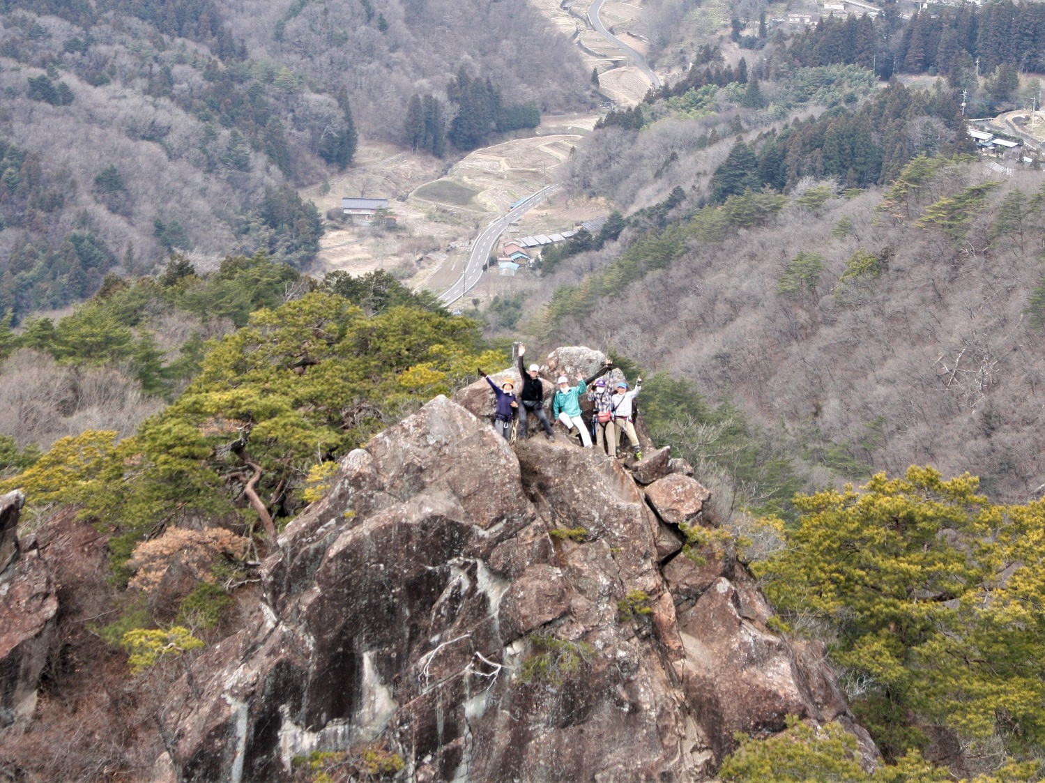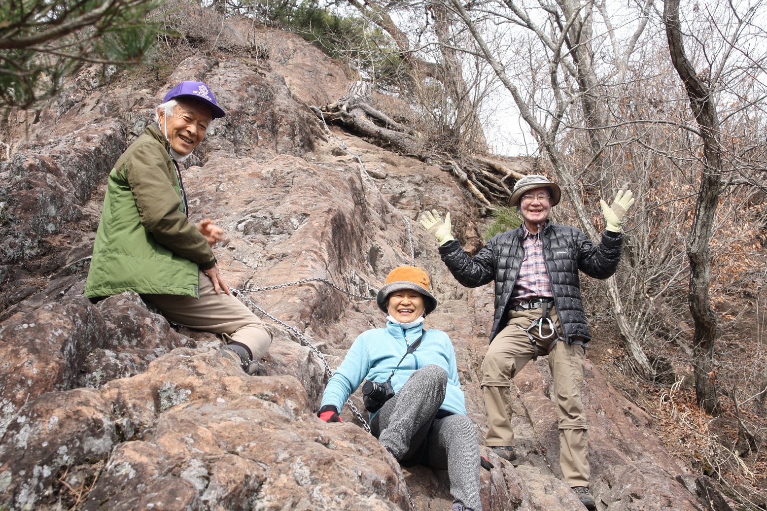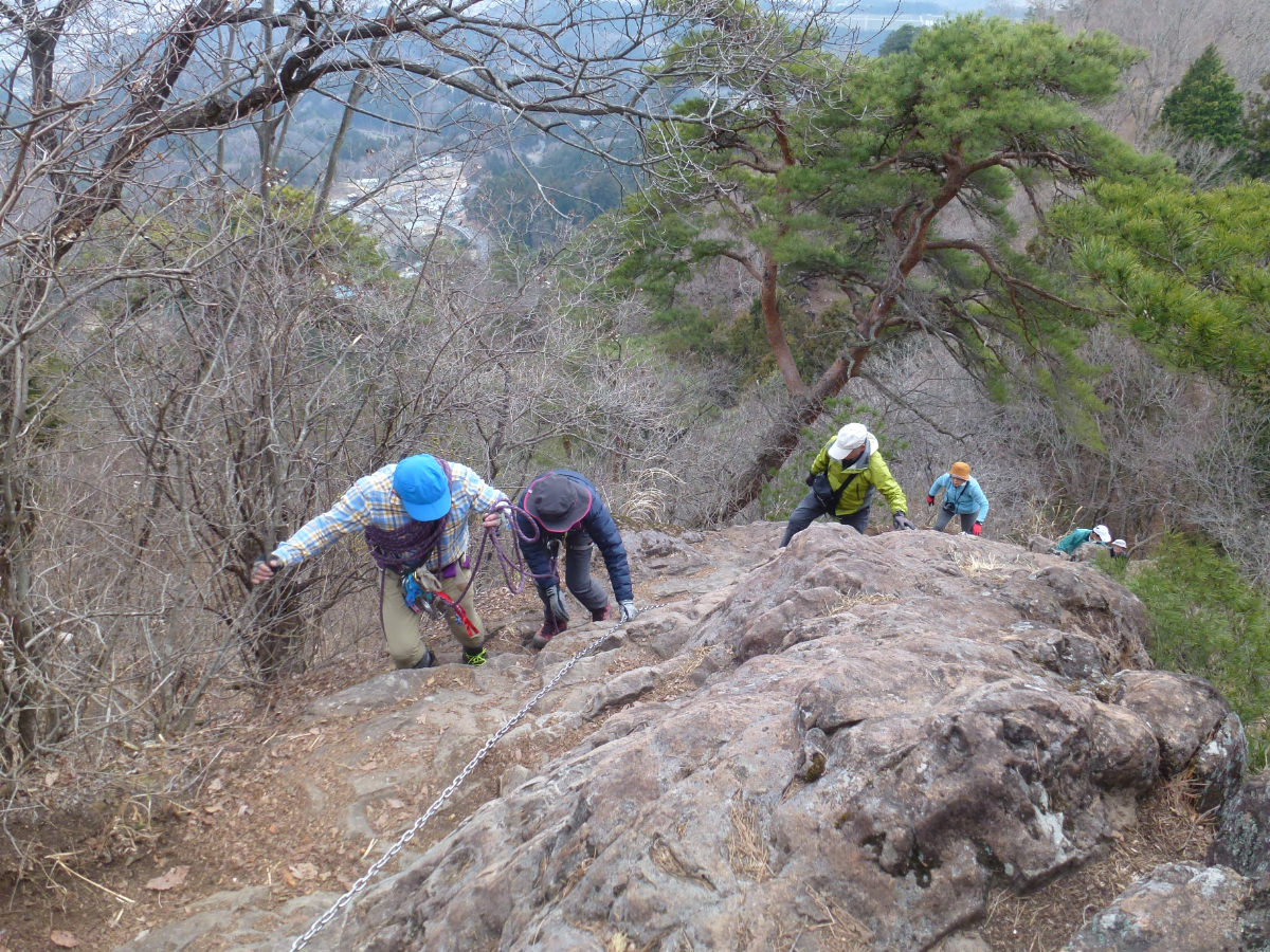 今回は、登山口から小天狗、不動岩、大天狗(嵩山頂上)と、鎖を頼りに岩を登り、低山とはいえ素晴らしい展望のご褒美が待っていた。