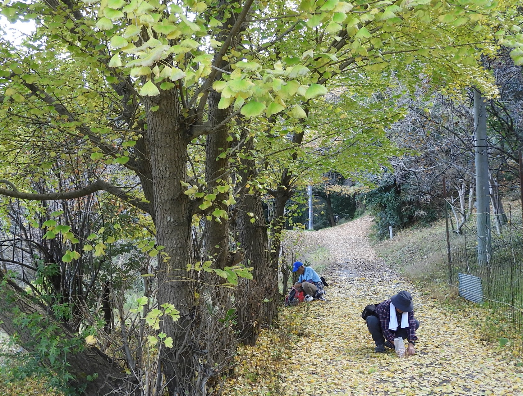 銀杏拾いに夢中