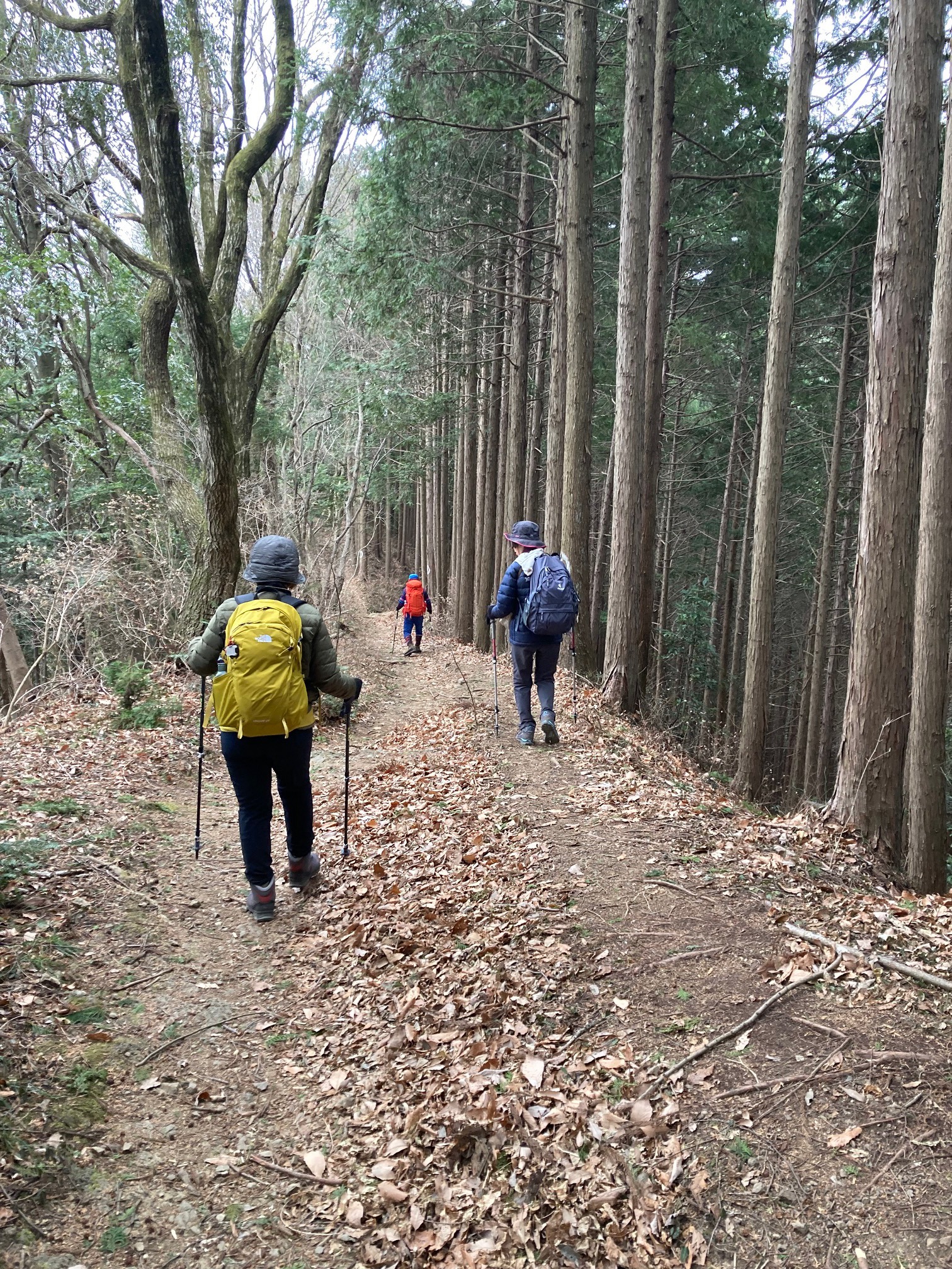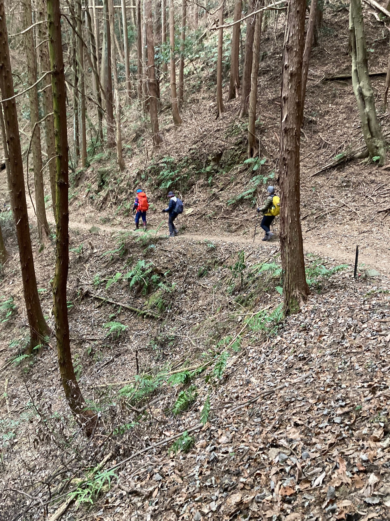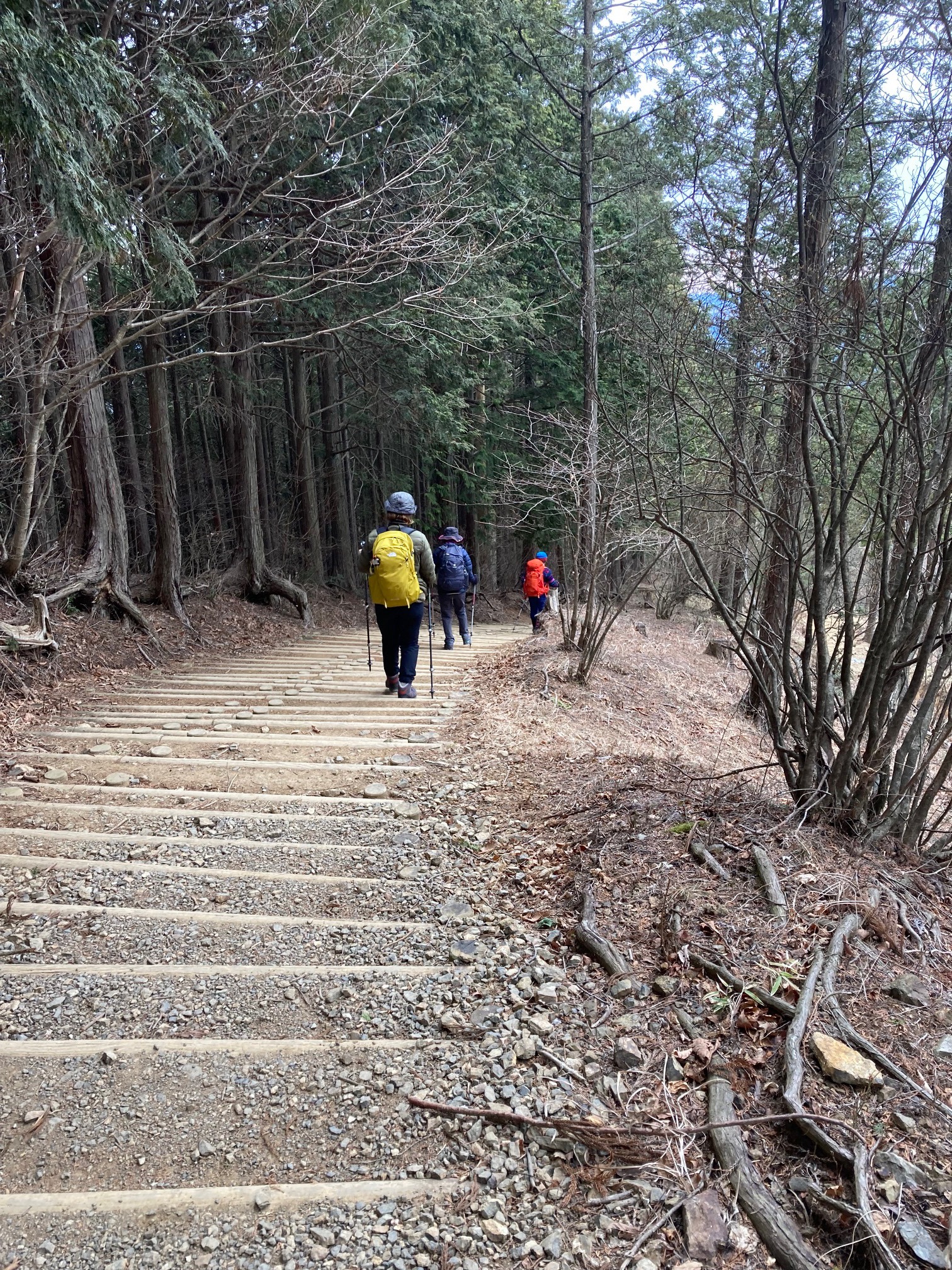 下りが多かったので結構寒い思いもしたが、楽しく頑張って歩く事が出来た。 14.2km、5時間強の歩行時間であった。