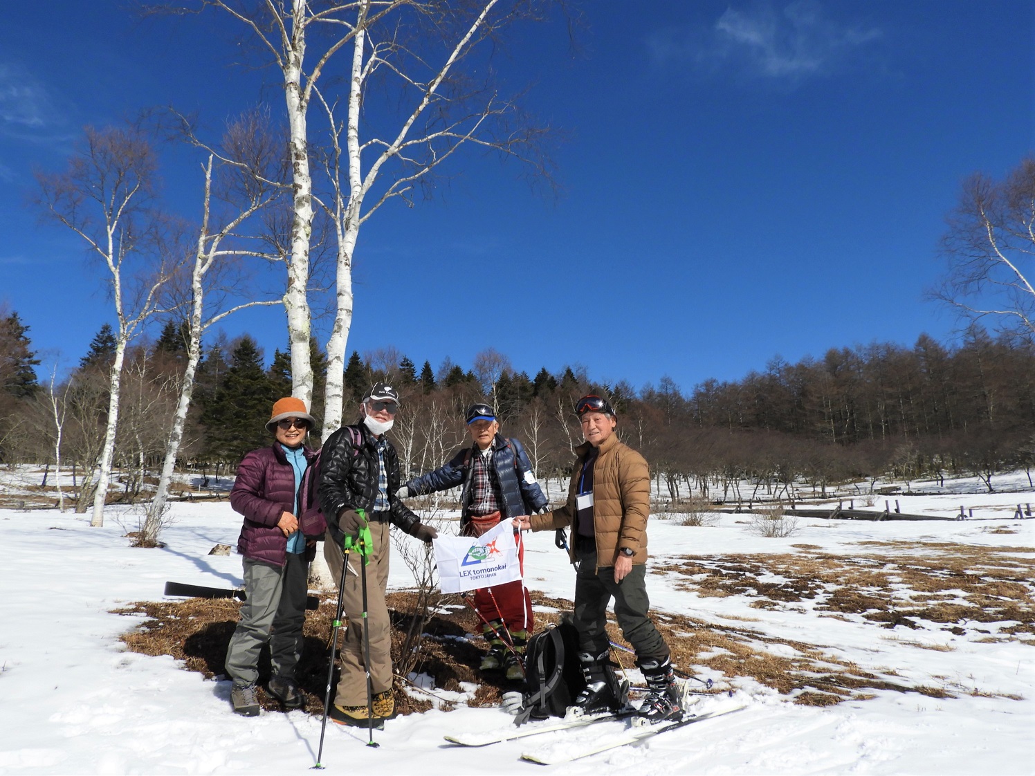 スキーもOKになったので、2名は3日の午後から楽しみ4日は4名で入笠山への登山。