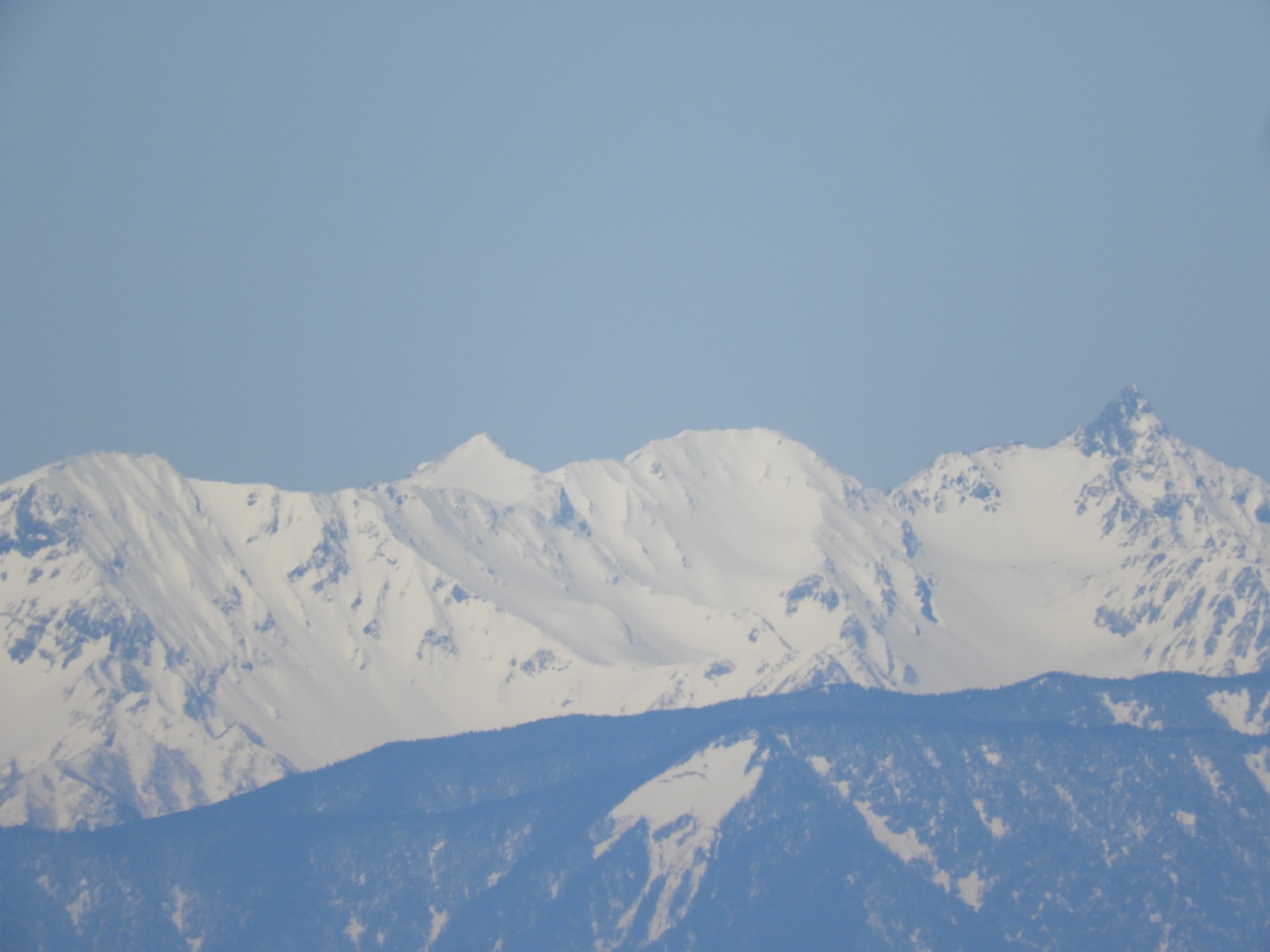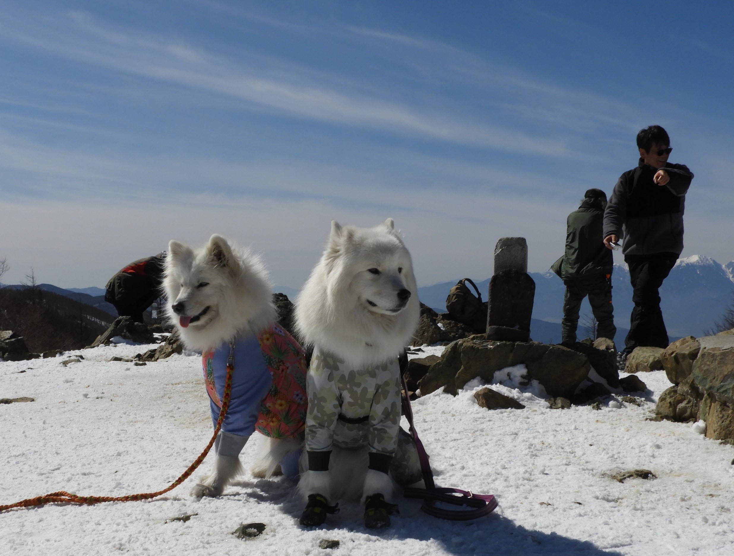 後の2名はアイゼンを履いて快適に登った。 最高のお天気で、山頂からは360度の景観だった。