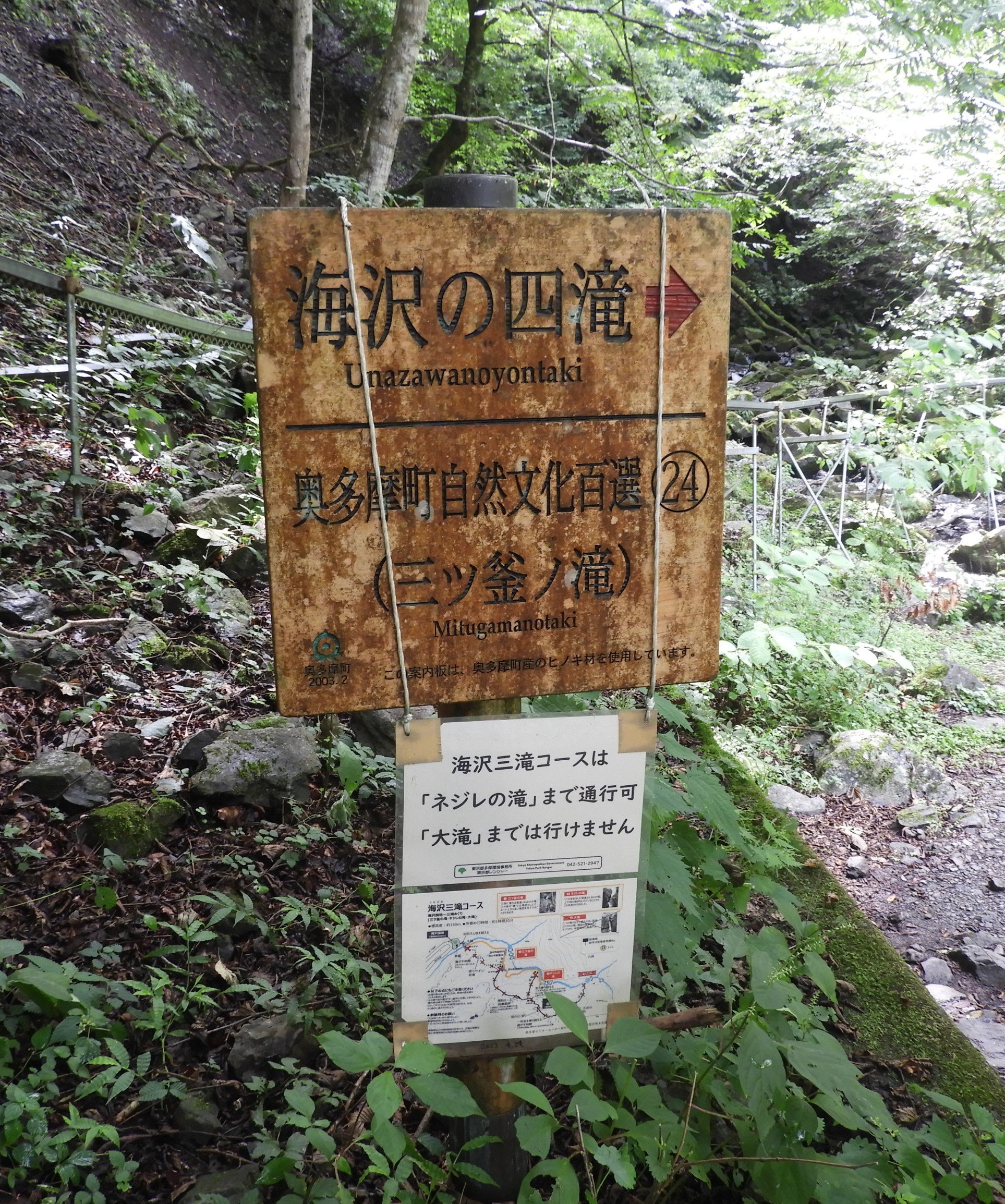 2日目: 奥多摩の秘境「海沢三滝」(三つ釜の滝、ネジレの滝、大滝) 大滝の上流に(不動の滝)がありそれを含めて四滝。しかし不動の滝は危険すぎ近づけないらしい。