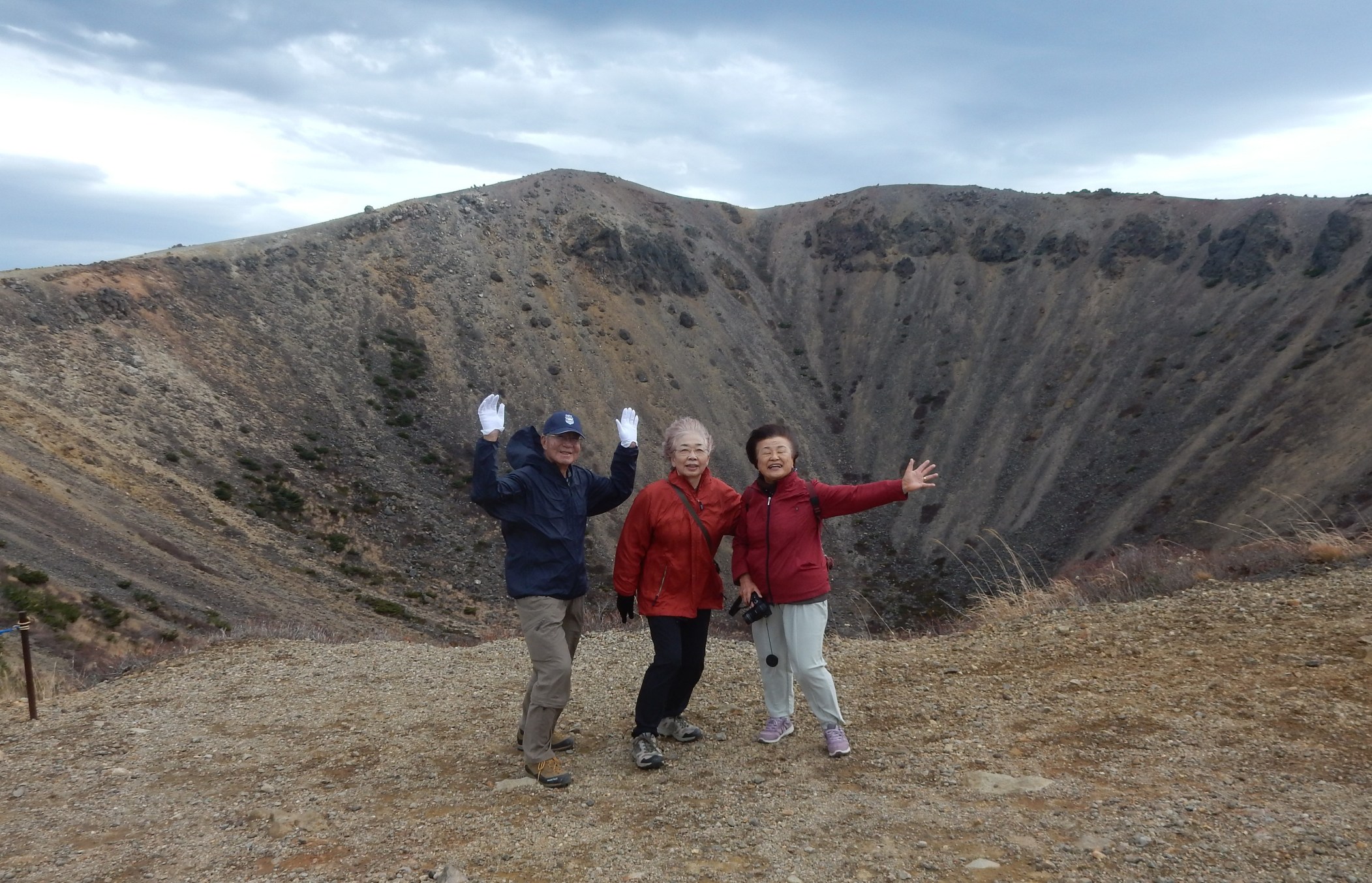 2日目 磐梯吾妻スカイラインを走り、浄土平駐車場まで。ここで吾妻小富士お鉢(山頂)まで登る。(登りたったの15分の行程でしたが)