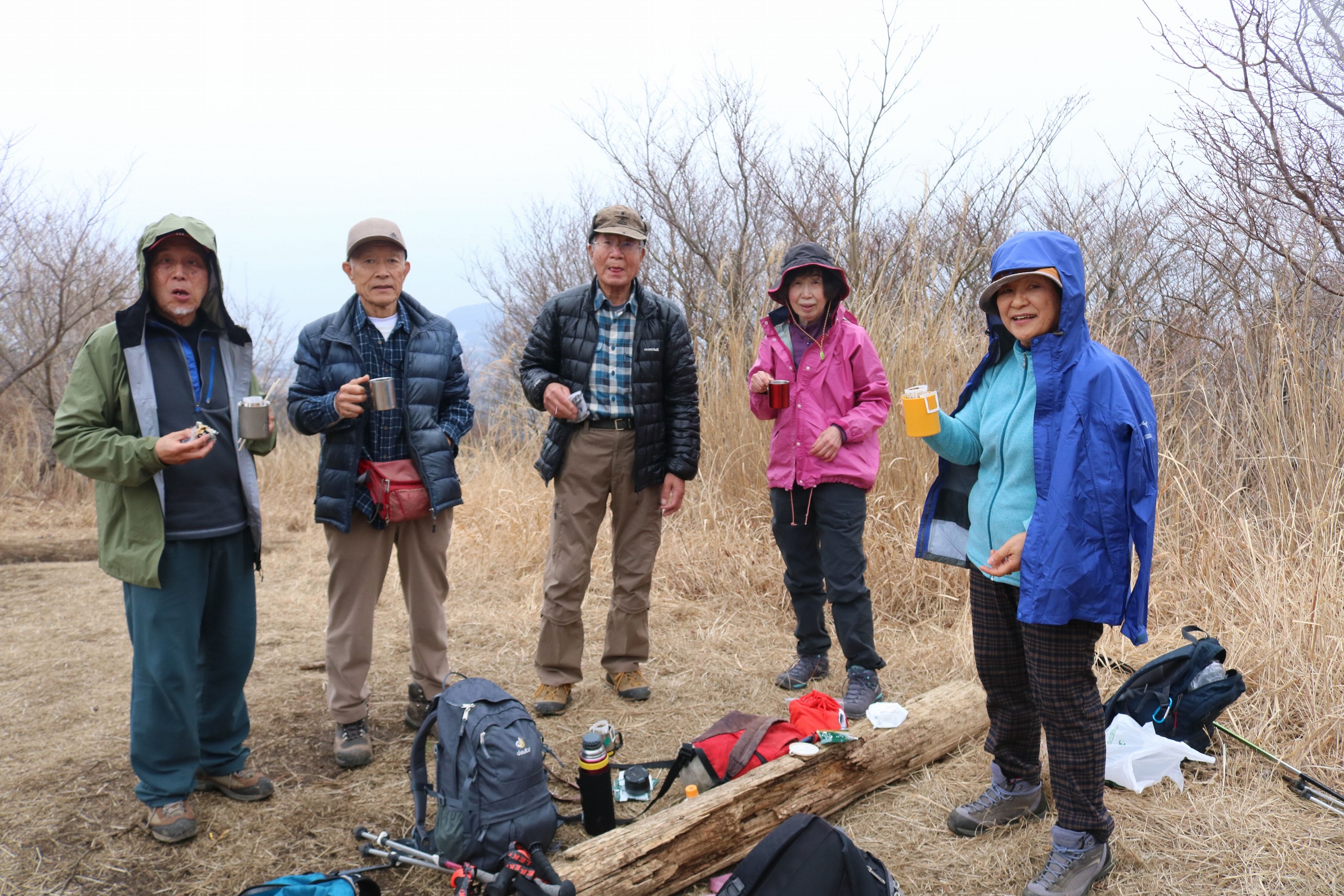 幕山山頂、コーヒーで乾杯 雨が落ちてきました