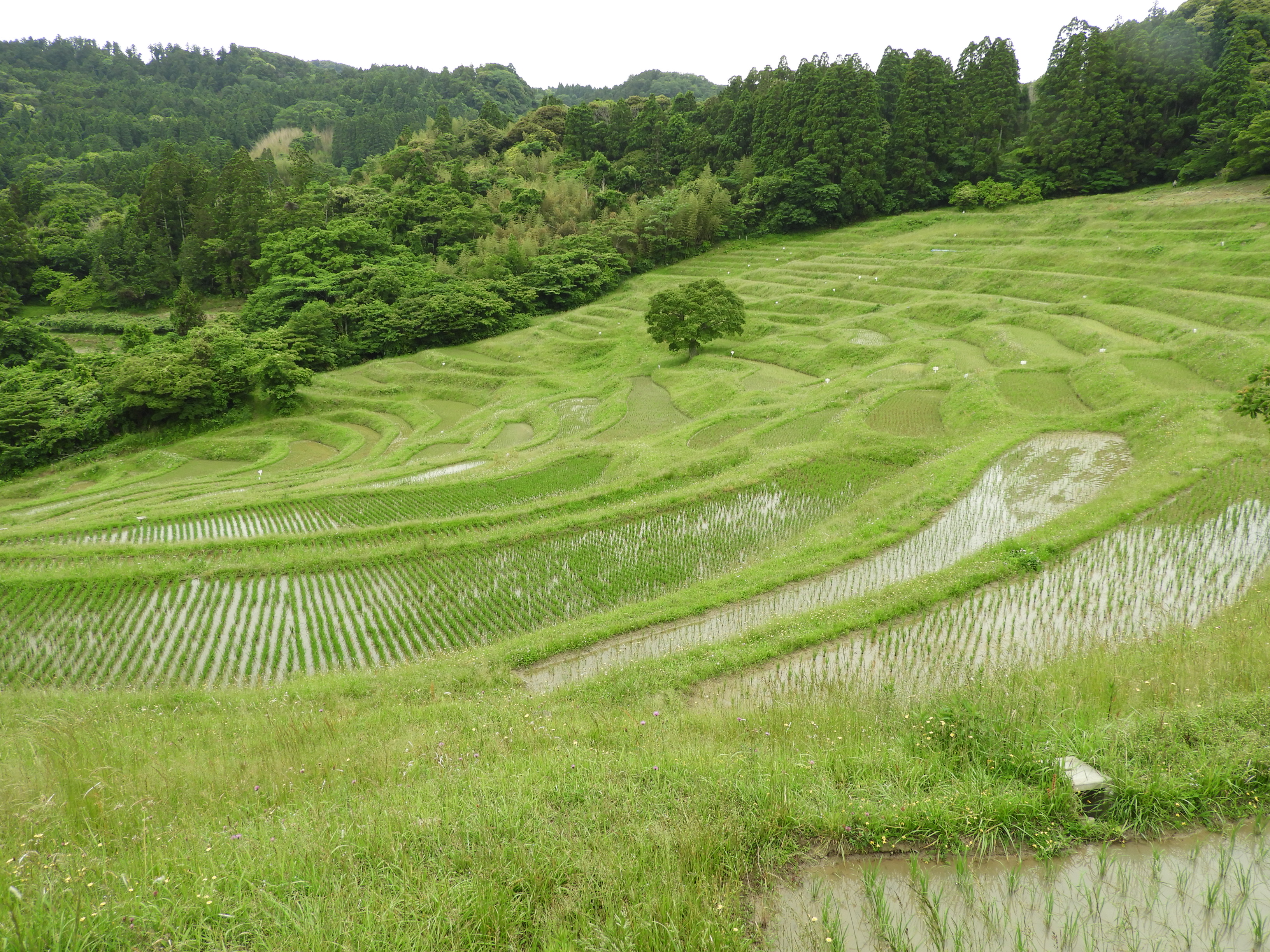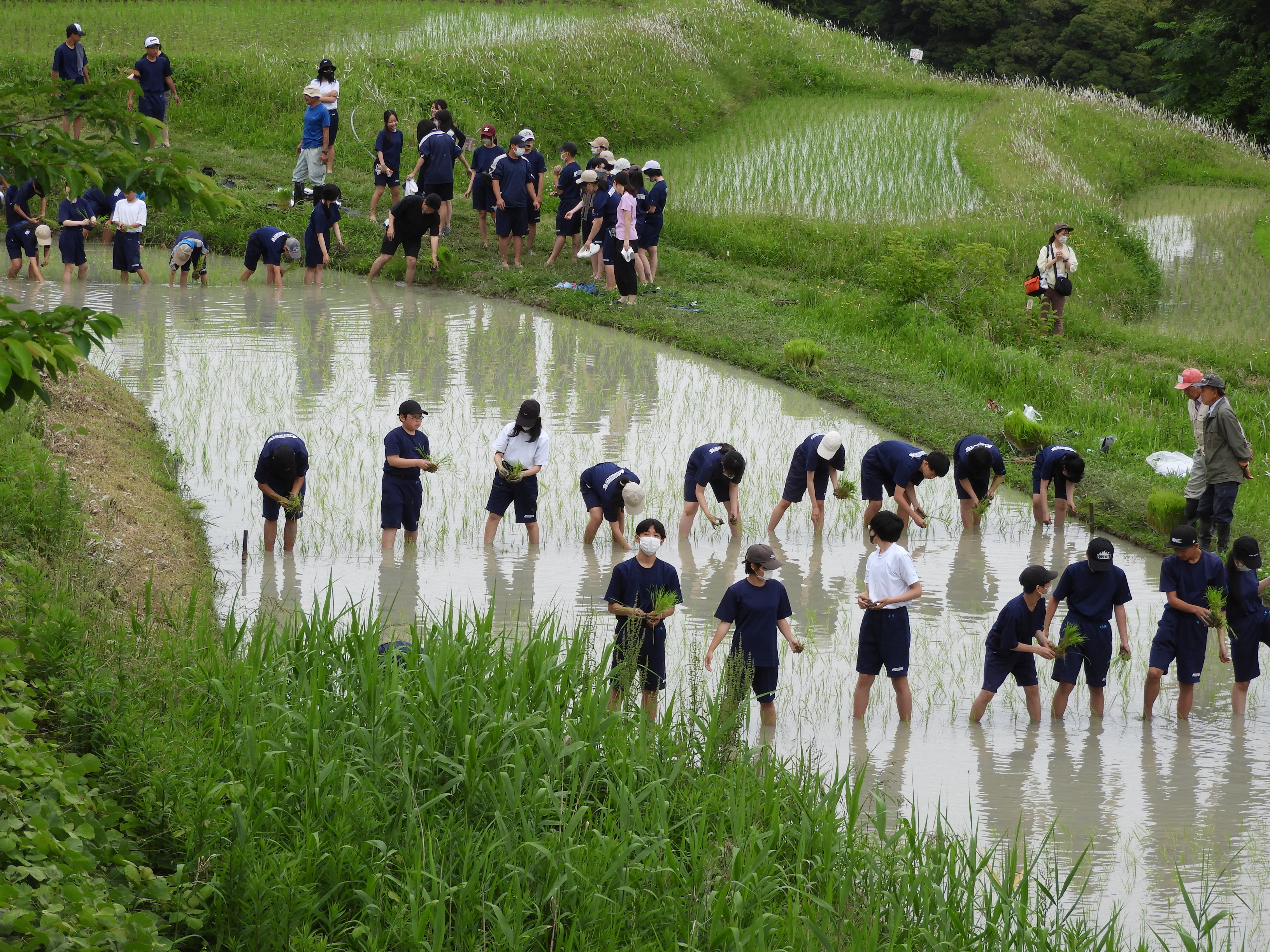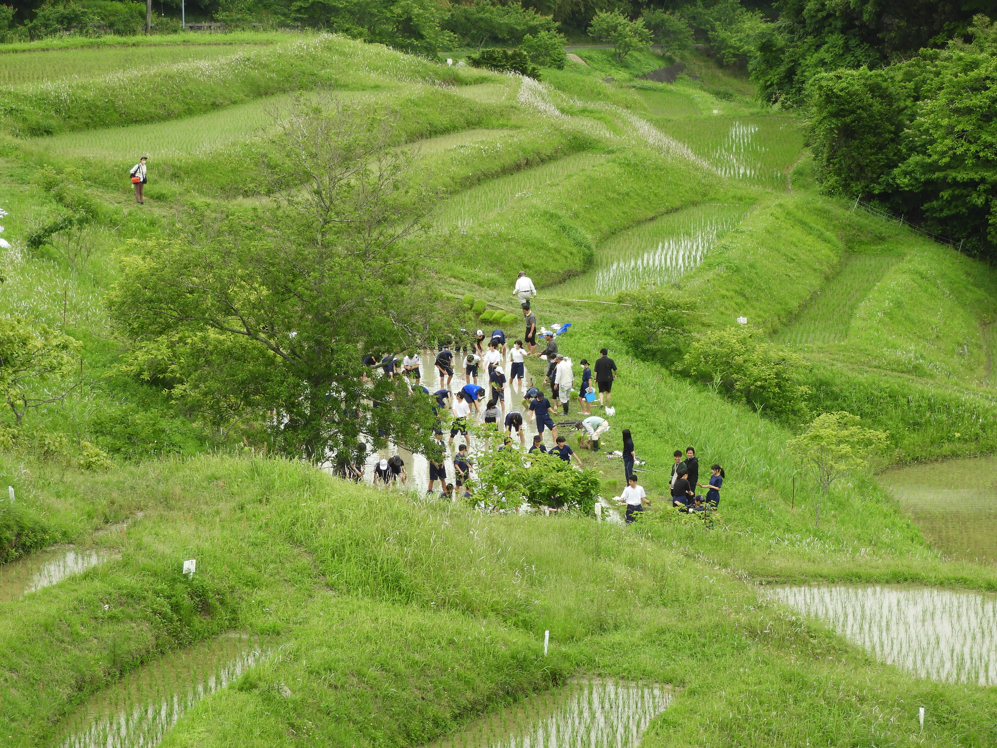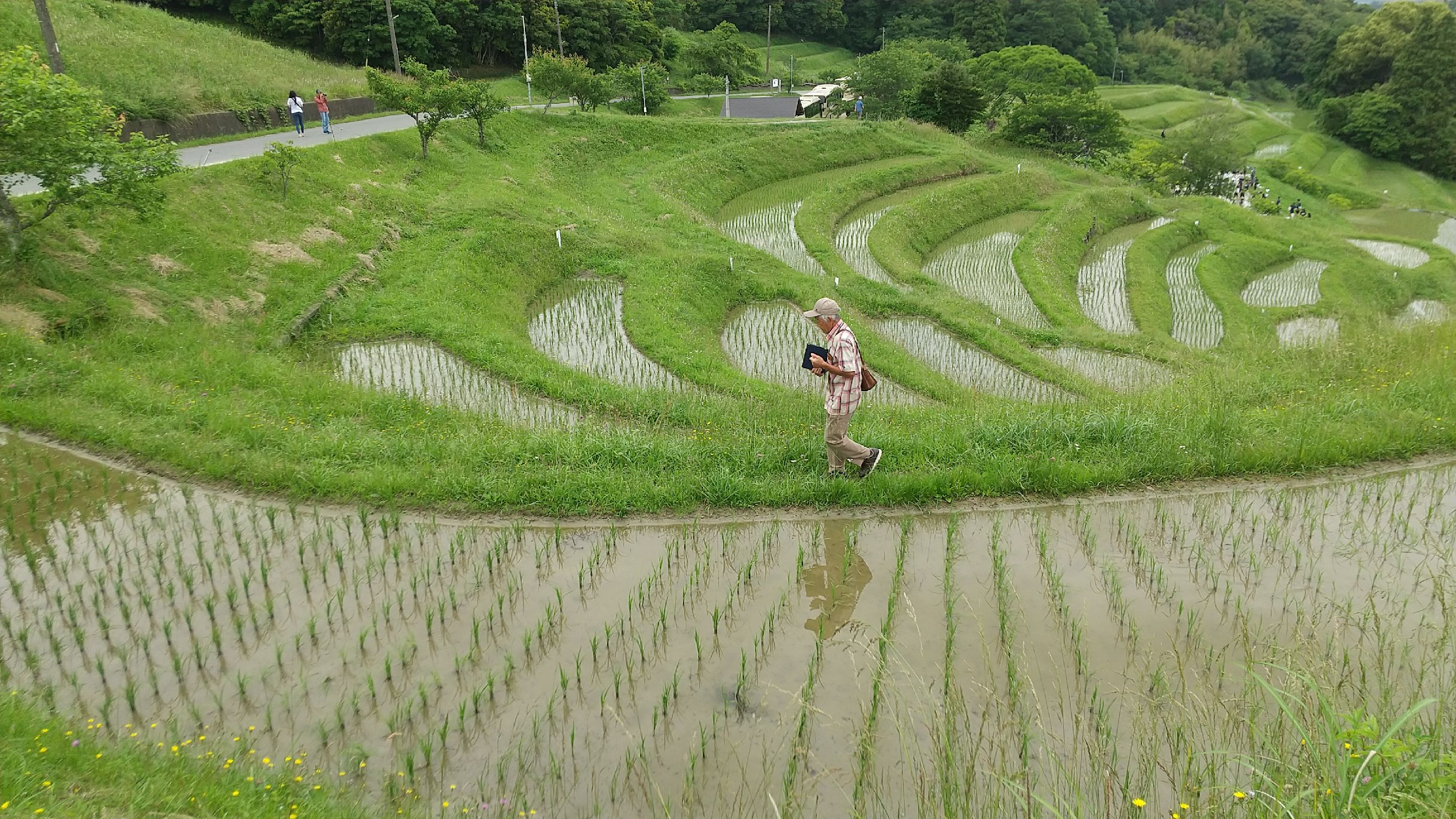 それでも急斜面に400枚近くの田んぼが並んでいる景色は実に美しい。ちょうど、横浜の中学生達が課外学習なのだろう。体験田植えを行っていた。
