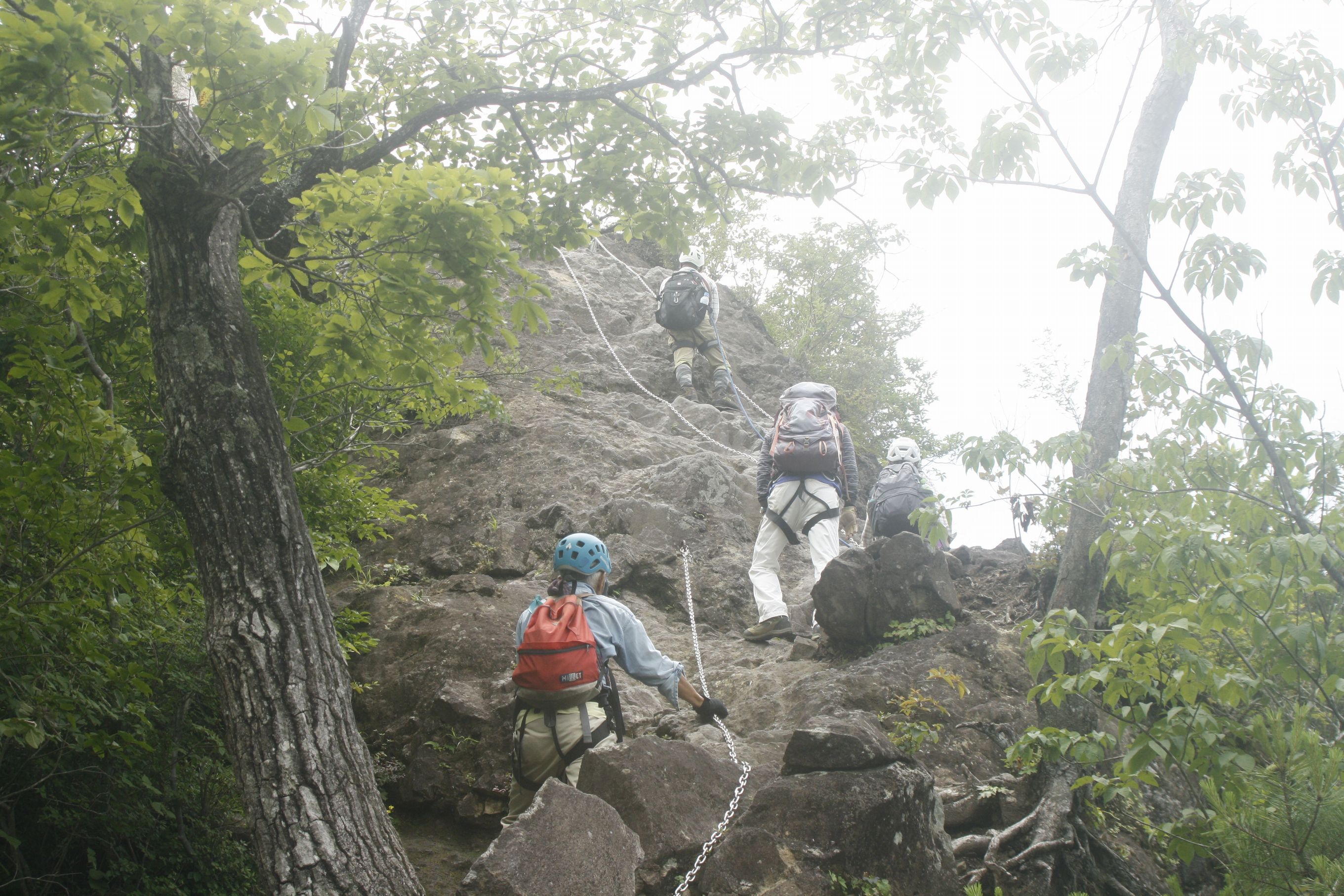 前々日までは梅雨空の雨が続いて心配されたが、当日は雨も降らずまあまあの登山日和であった。