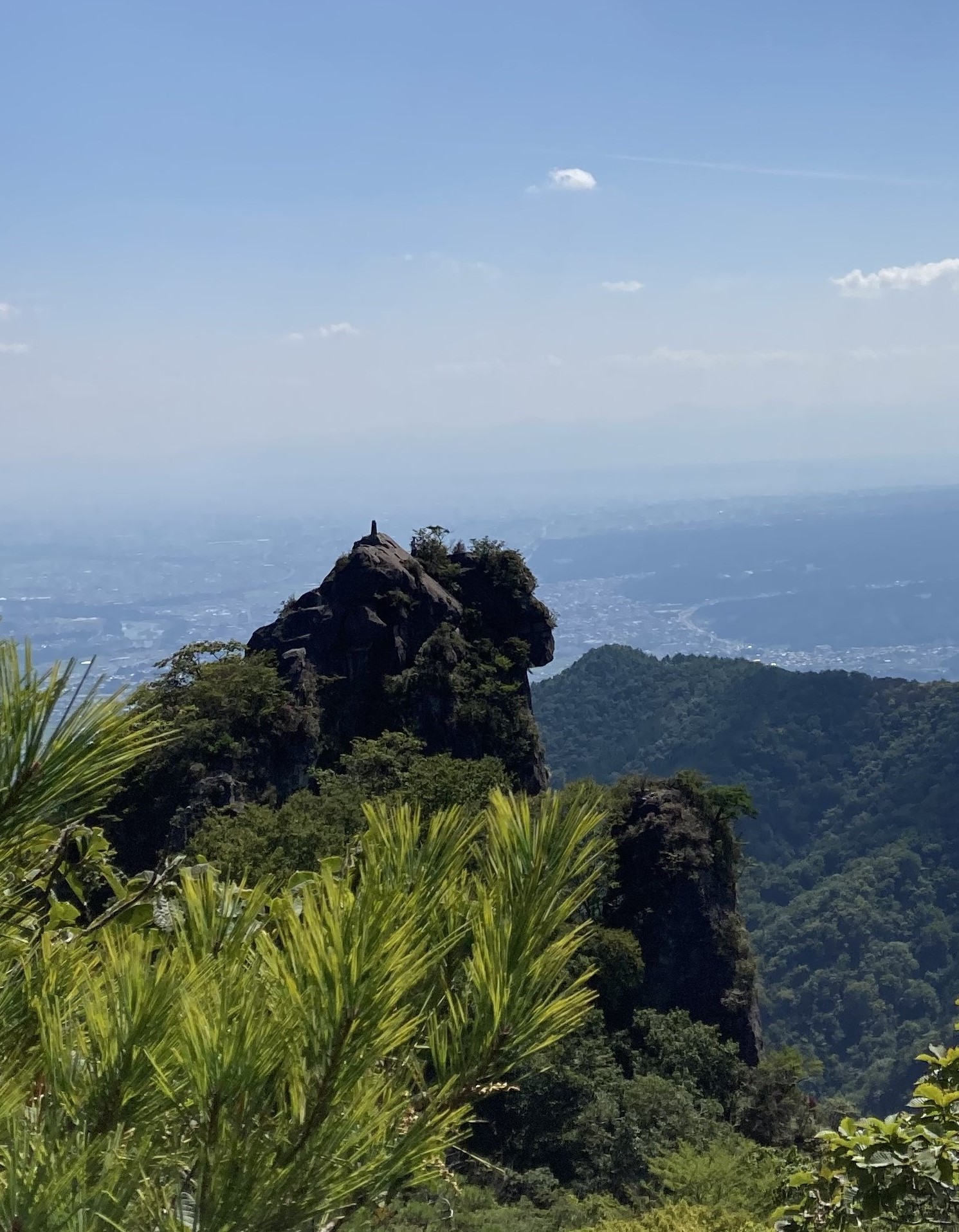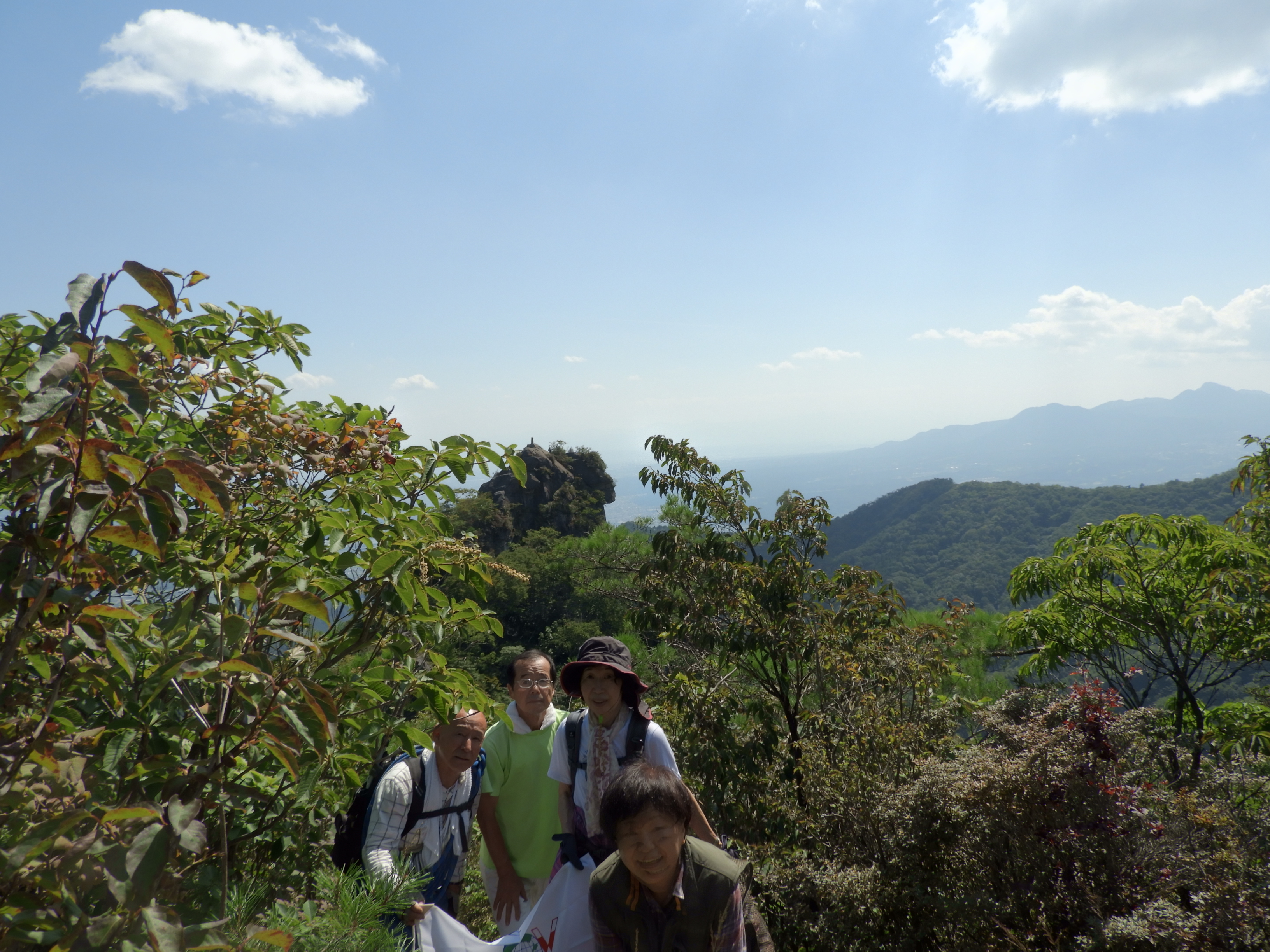 大黒岩(獅子岩)を背景に。かなり足元が不安定でした。