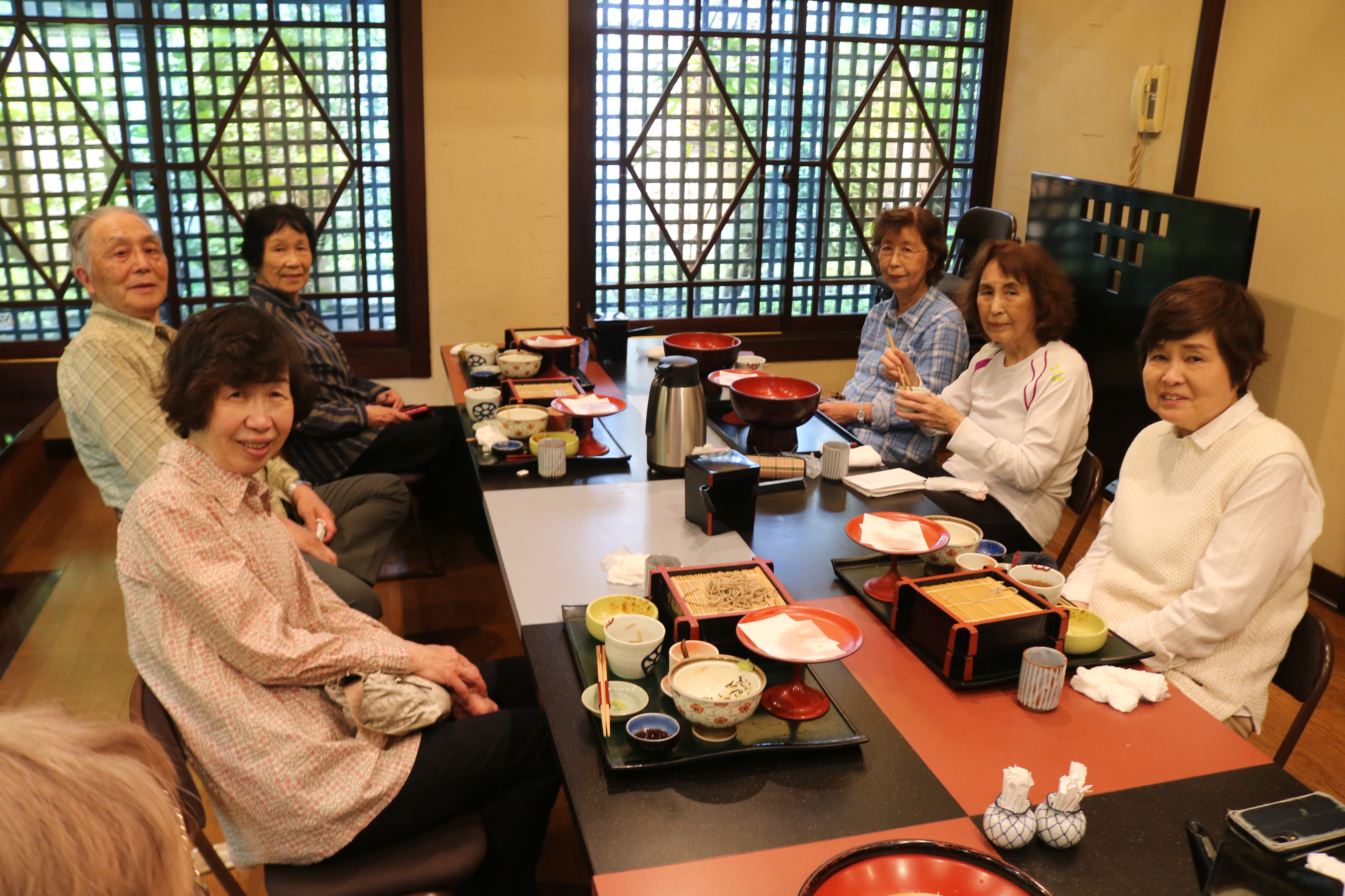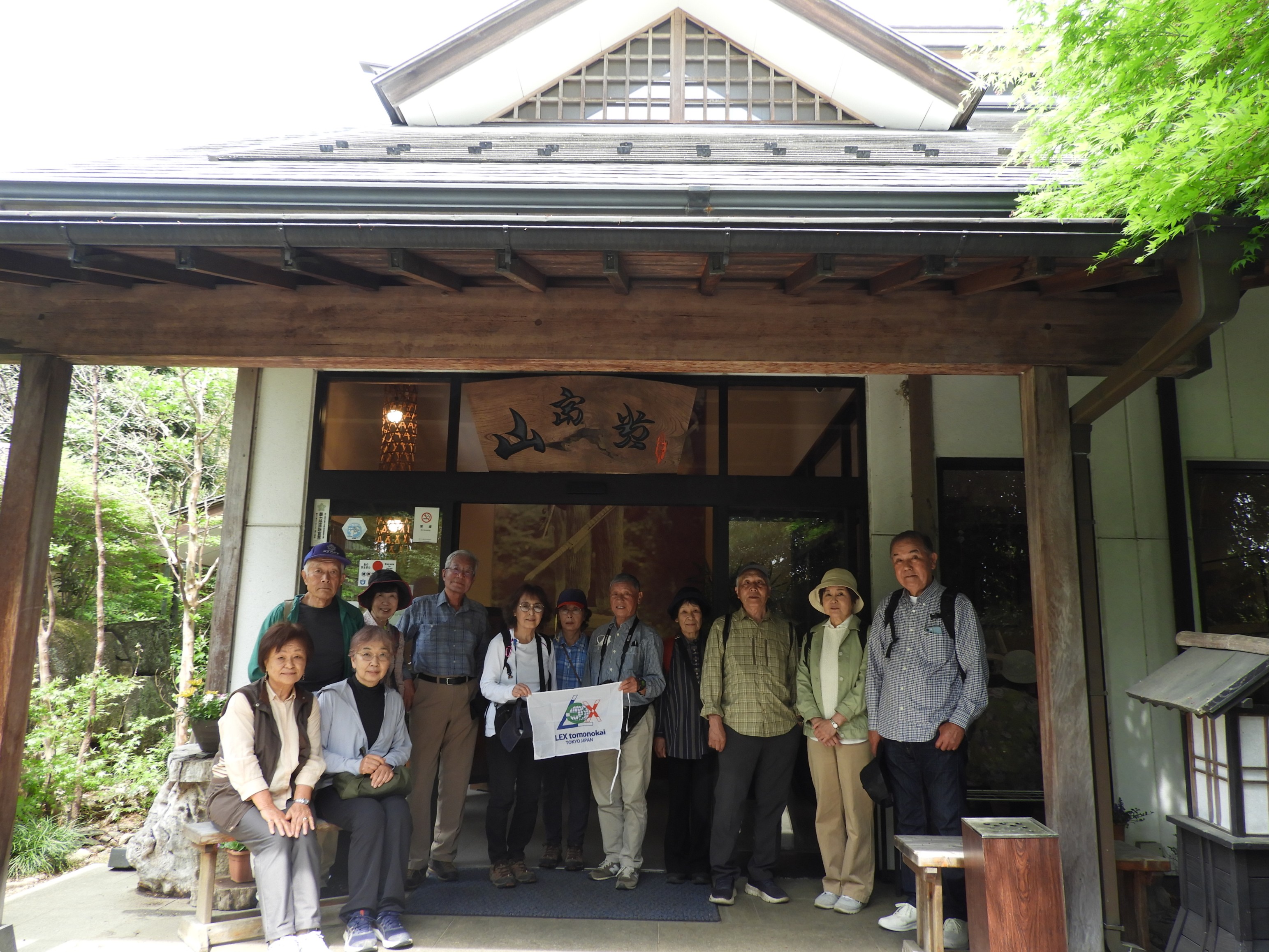 お昼は十割手打ちそばの風情ある建物の「山富貴」でいただき、前後にヤマブキとツツジ観賞です。ツツジはまだ満開にはなっていませんが、
